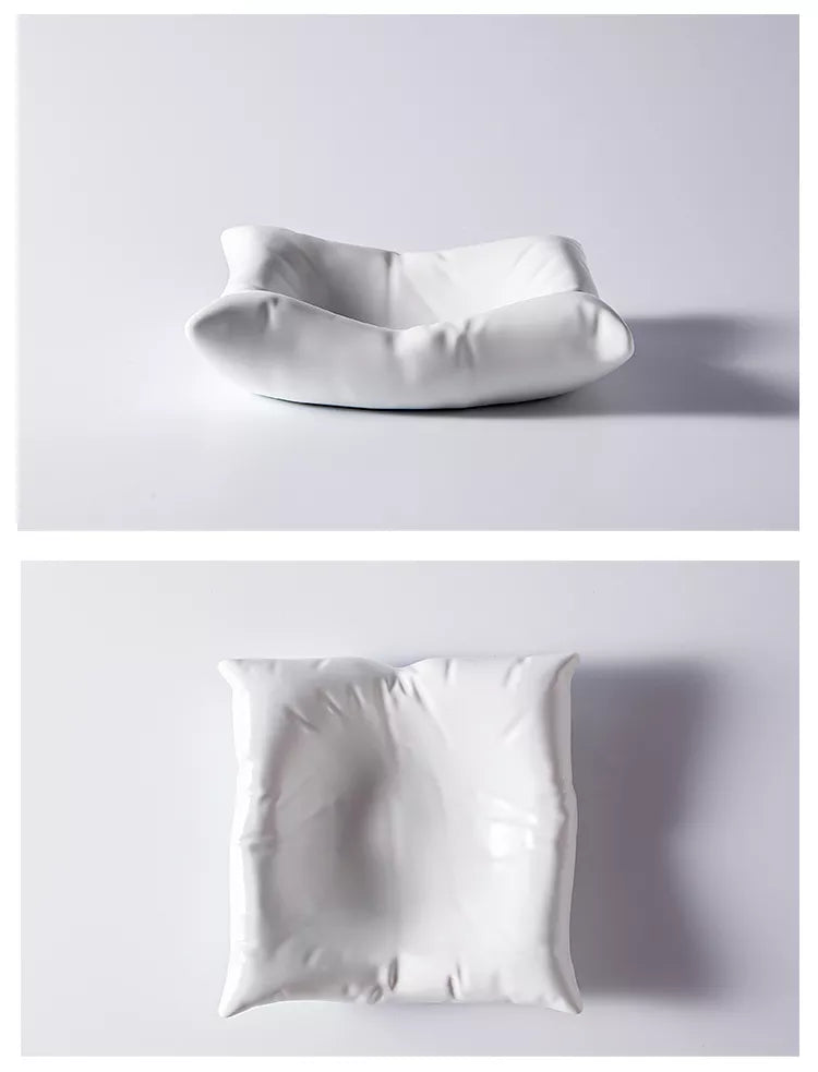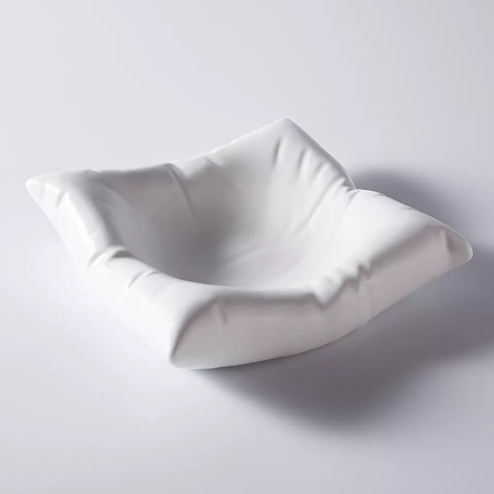 Elegante piatto in porcellana bianca per uso alimentare a forma di cuscino. Ideale per piatti gourmet e per stupire i vostri ospiti.